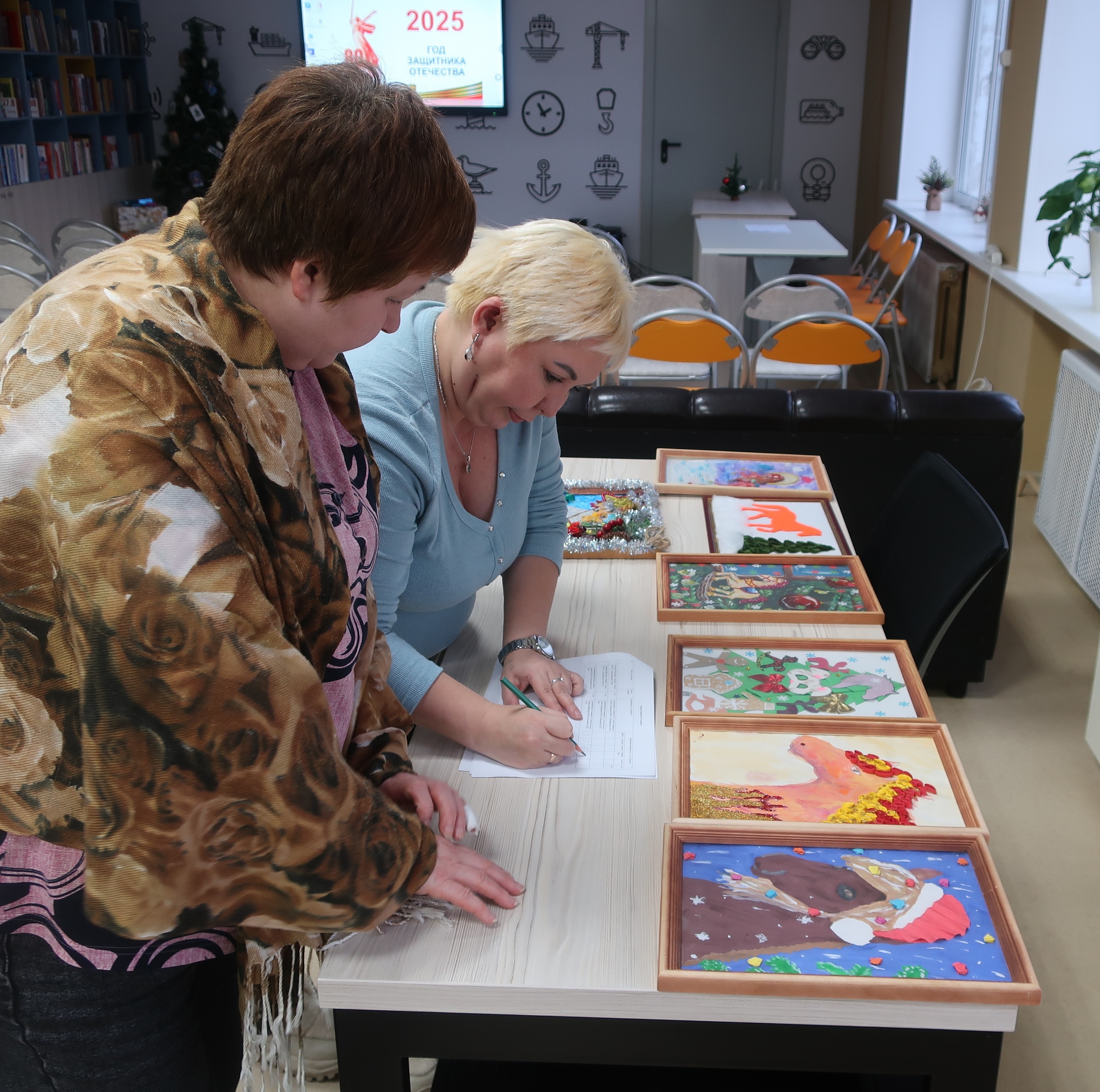 19 декабря в рамках новогоднего конкурса «Поет зима-аукает» компетентное жюри оценило работы участников номинации «Зимняя сказка в рамке», выполненные на фоторамках формата А4. В этих картинах, а всего было 20 работ, ребята использовали разнообразные материалы и техники, такие как бумага, еловые шишки, нити, пряжа. Центральным элементом каждой работы стала фигурка лошадки, символизирующая наступающий 2026 год.