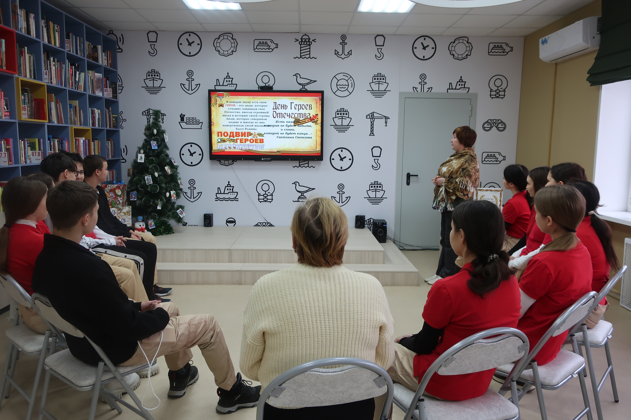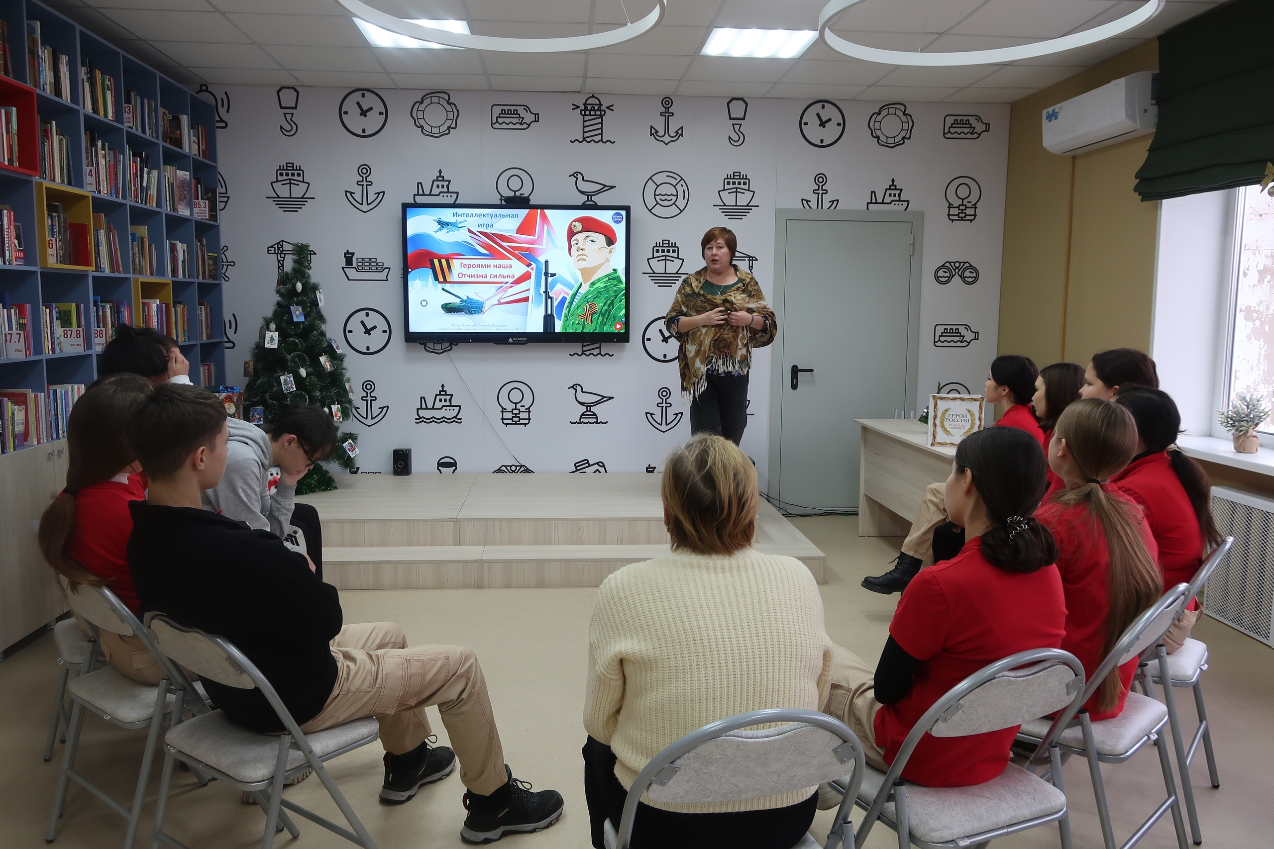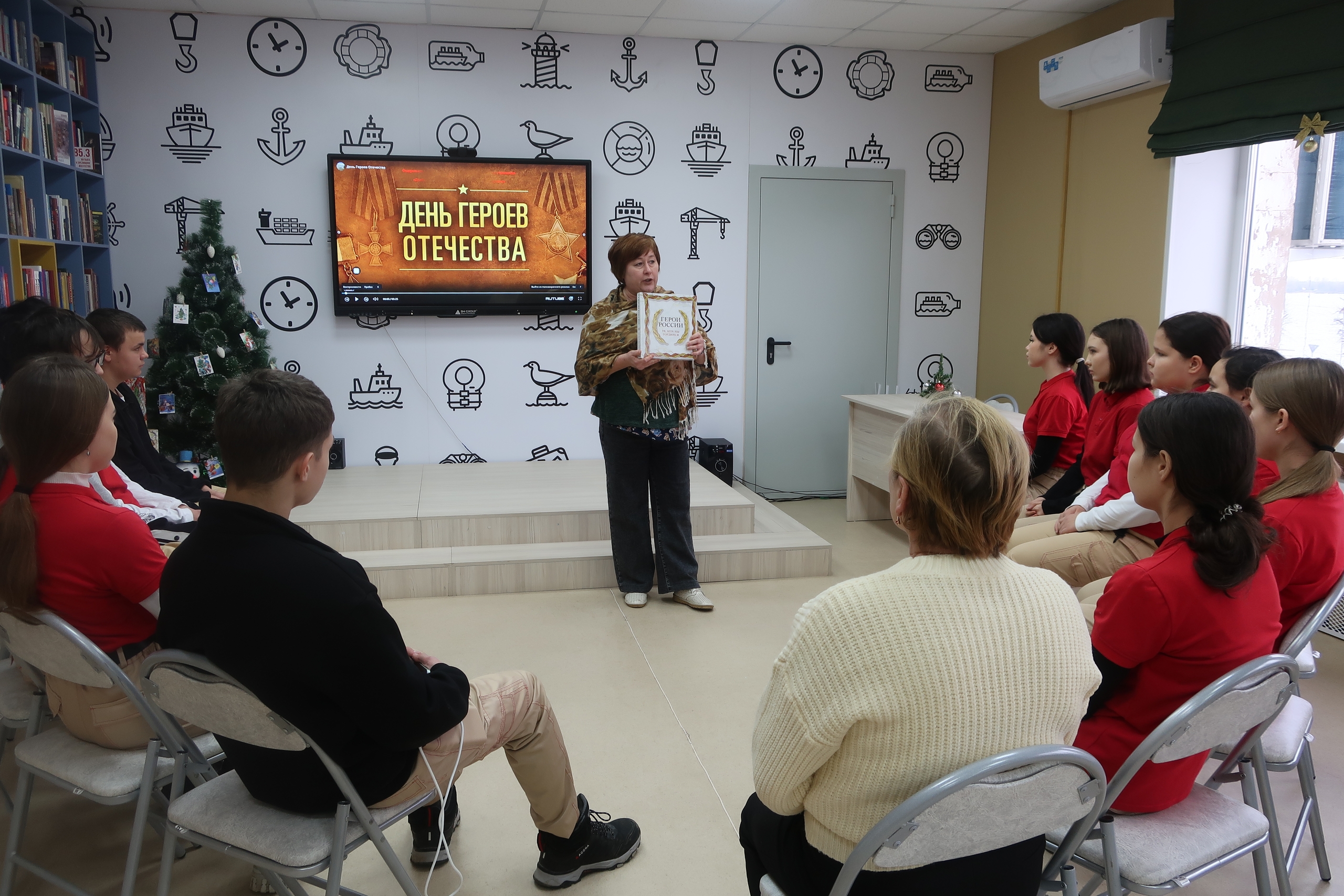 Ведущая мероприятия познакомила с книгой «Герои России. Те, кем мы гордимся», в которой рассказывается о выдающихся людях нашей страны, проявивших отвагу, защищая страну и ведя ее вперед!
