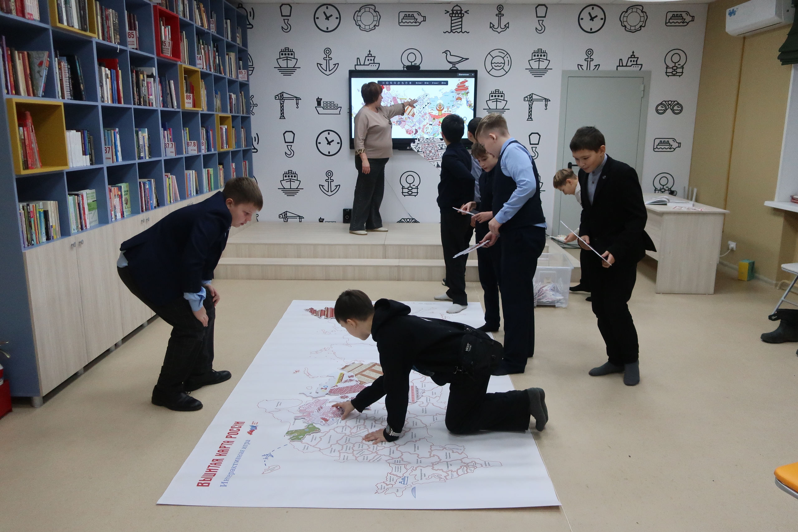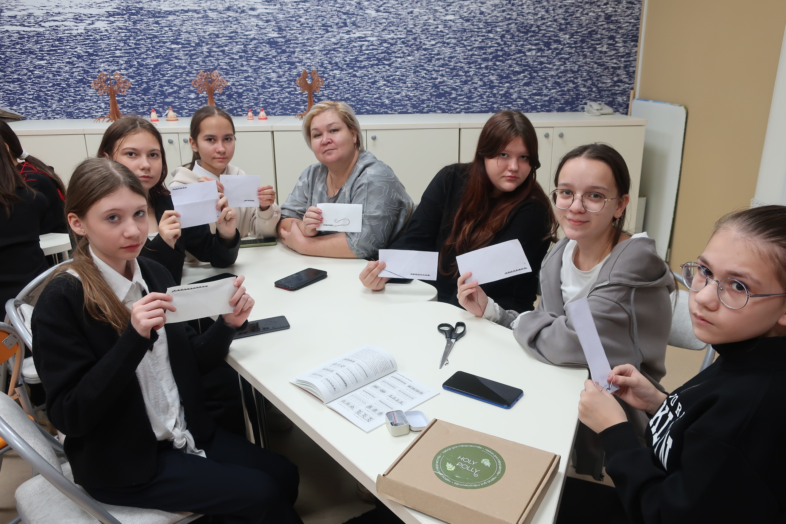 В завершение мероприятия сотрудник библиотеки Н. Н. Ларионова с юными мастерицами провела мастер-класс по технике вышивания шва «Чĕкеç хӳри» (Ласточкин хвост), а мальчики в это время собирали из пазлов вышитую карту России.