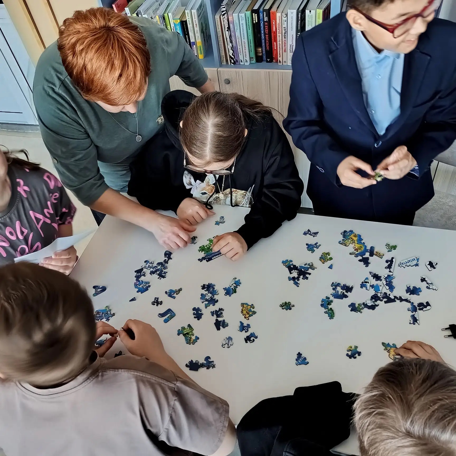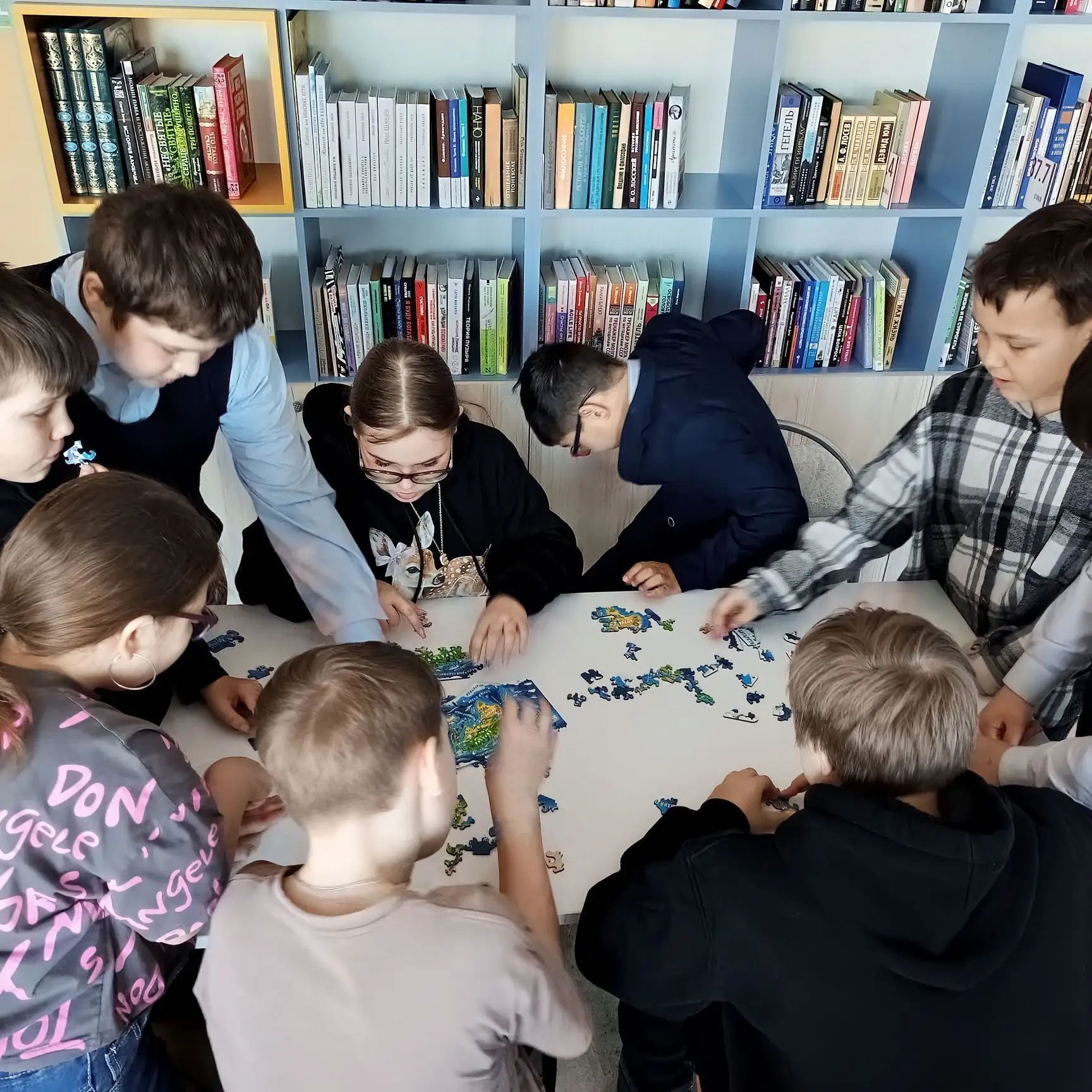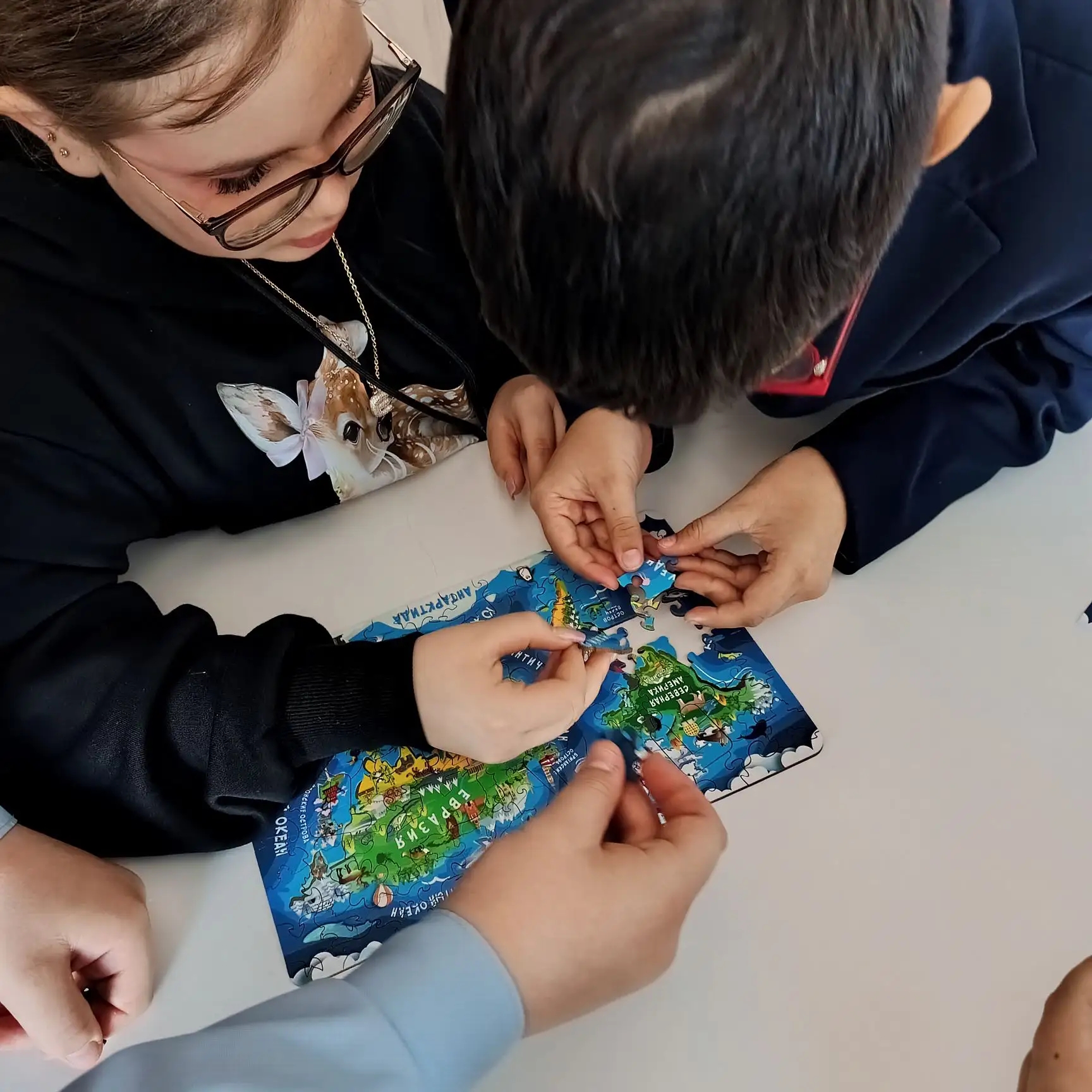 В завершение мероприятия ребята собрали деревянный пазл «Карта мира», состоящий из 109 элементов.