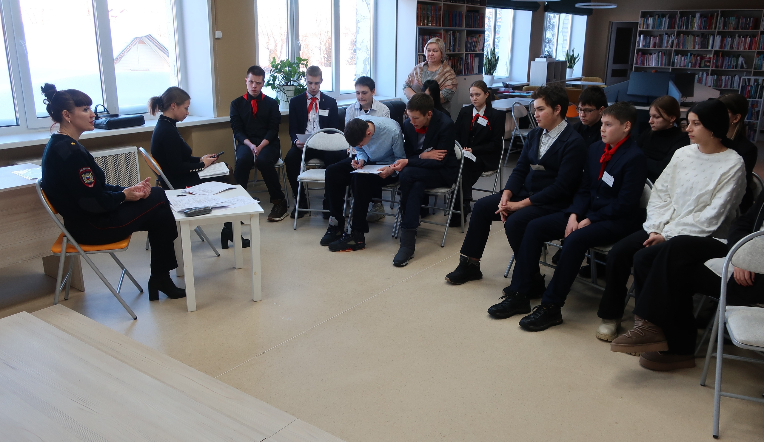 Перед началом встречи ребята посмотрели видеоролик «Проступки и наказание», раскрывающий ключевые моменты темы. Затем Оксана Игоревна подробно рассказала о правонарушениях, выявленных у ребят, находящихся на профилактическом контроле полиции. Она акцентировала внимание на правилах поведения подростков на улицах летом и зимой, напомнив об ограничениях пребывания вне дома в вечернее и ночное время суток.