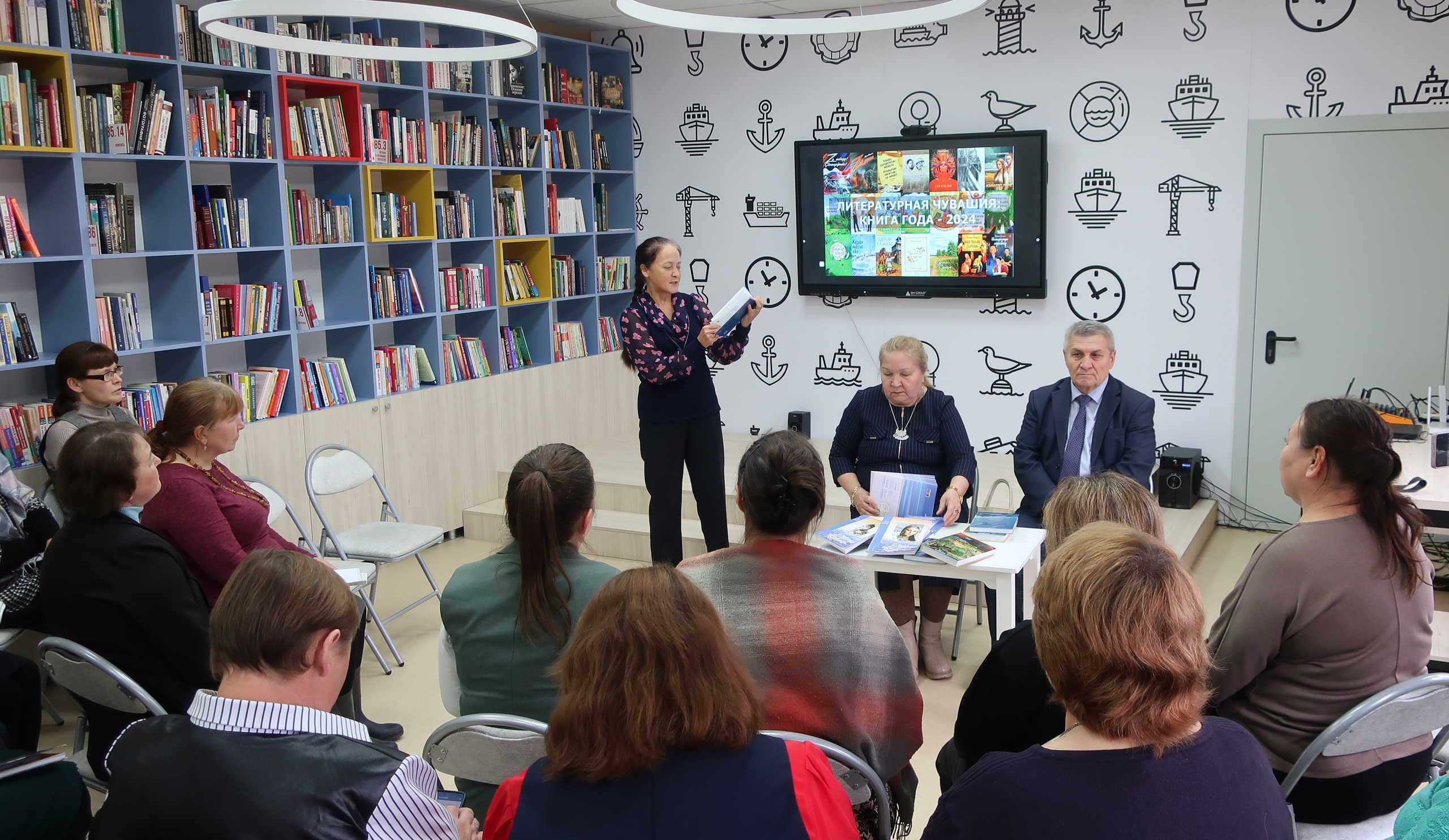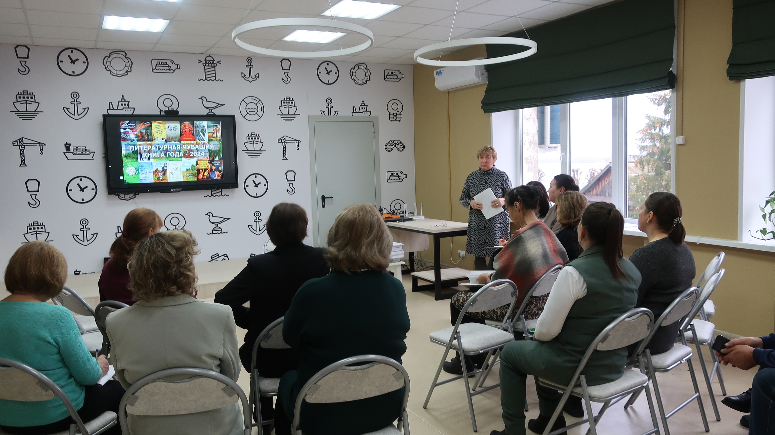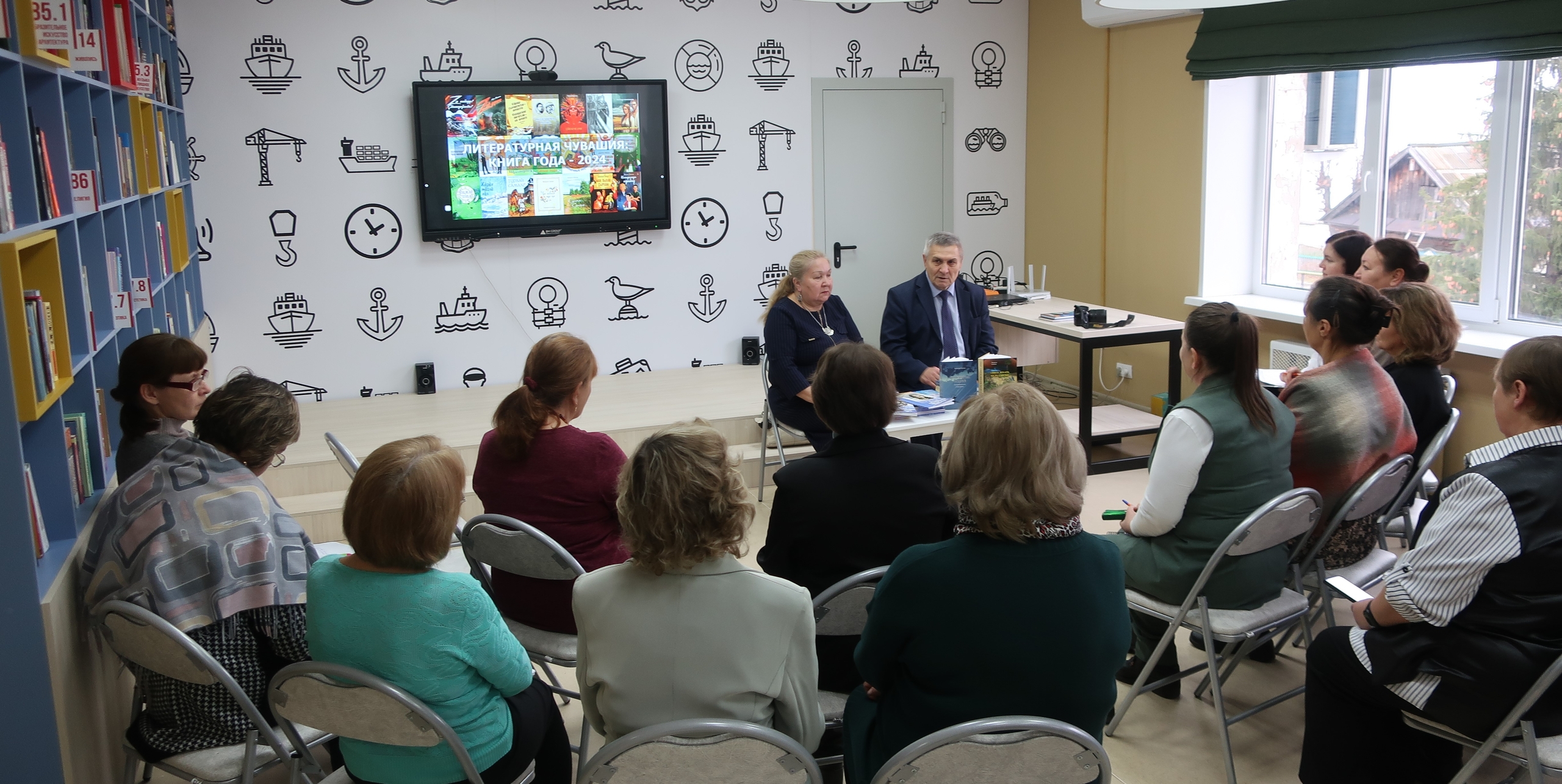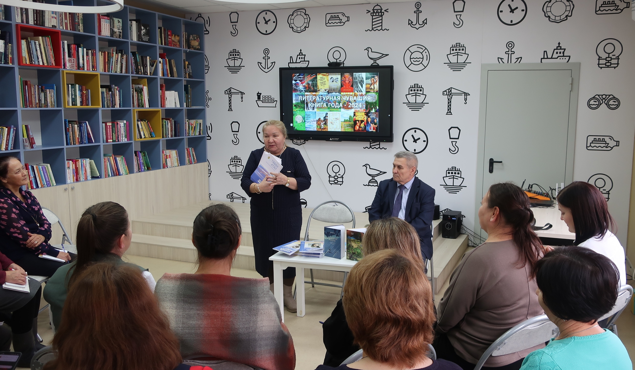 Затем состоялась творческая встреча с Константиновым В. Н., и.о. главного редактора газеты «Знамя (Ялав)», и Сачковой Л. Н., редактором журнала «Тӑван Атӑл». Оба редактора, писатели, их произведения участвовали в фестивале-конкурсе «Литературная Чувашия: самая читаемая книга года» в 2023 и 2024 годах.
